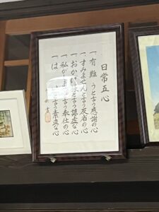 社務所で御朱印を待つ間、私の目に飛び込んできたのは「日常五心」と記された書でした。