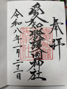 愛知縣護國神社の御朱印は、非常に力強く、かつ端正な墨書きが特徴です。