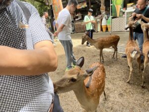 鹿せんべいを手に鹿たちと戯れるひとときは、まさに奈良ならではの心和む時間。