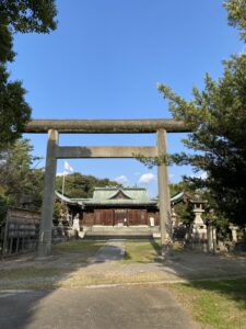 大垣城公園の南側に立つ大鳥居をくぐり、冬の澄んだ空気の中を歩くと、右手に落ち着いた佇まいの神社が見えてきます。