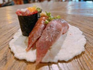 そこで頬張る「飛騨牛寿司」は、まさに至福のひとときです。